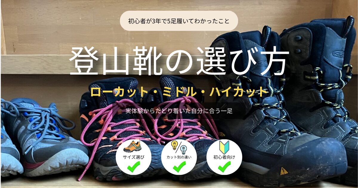 登山靴のサイズ選びやローカット・ミドルカット・ハイカットの違いについても、実体験をもとに紹介します。