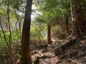 前半は伐採地帯で日差しを強く感じる区間があり、後半は静かな森の中を淡々と登る印象です。展望ポイントは多くありませんが、その分、人が少なく落ち着いて歩けるルートだと感じました。